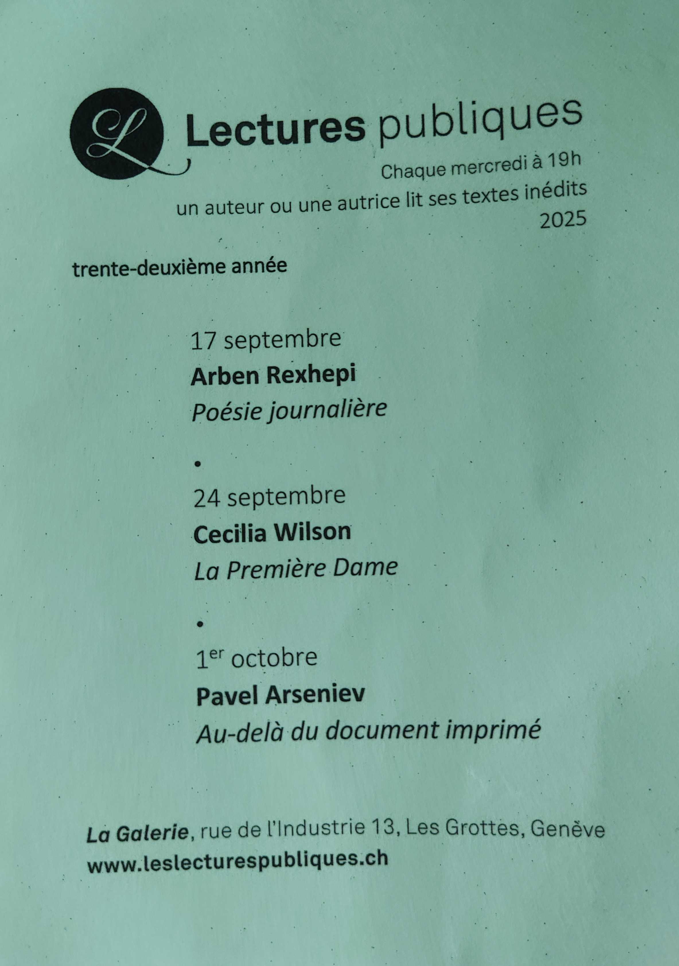 Bienvenue aux Lectures publiquesLes auteurs lisent leurs textes inédits à La Galerie |